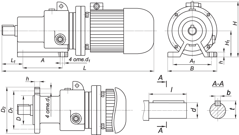 ГАБАРИТНЫЕ И ПРИСОЕДИНИТЕЛЬНЫЕ РАЗМЕРЫ МОТОР-РЕДУКТОРОВ МВз